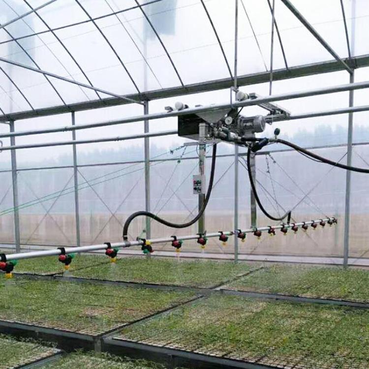 溫室自動噴灌機為普通型雙臂自走式噴灌機,噴灌均勻度高,噴嘴狀況可根據使用目的進行調整,除常規(guī)灌溉外還可進行施肥和試藥等多種作業(yè)工作。